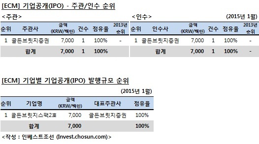 [인베스트조선 2015년 1월 집계][IPO 주관·인수 순위]
