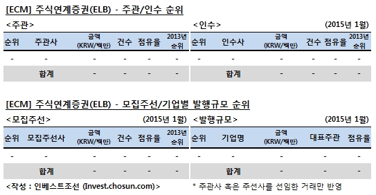 [인베스트조선 2015년 1월 집계][전체 ELB 주관·인수·주선 순위]