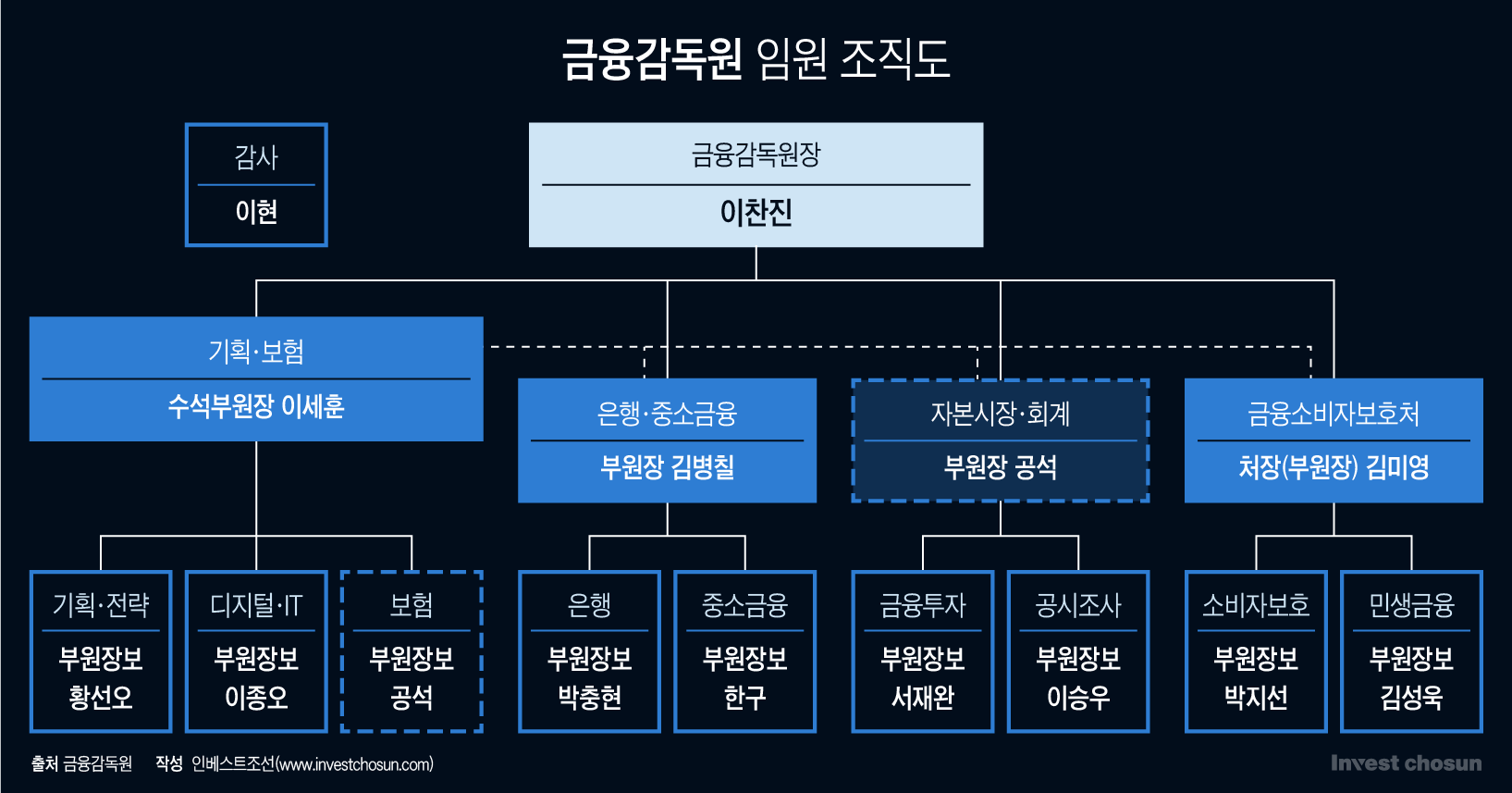 이 관계자는 “소비자보호총괄이 수석부원장급으로 격상되면 부원장 역할 재조정은 피할 수 없다”며 “결국 소비자보호총괄 인선이 금감원 전체 조직구조와 인사 흐름에 도미노 효과를 낼 것”이라고 설명했다.