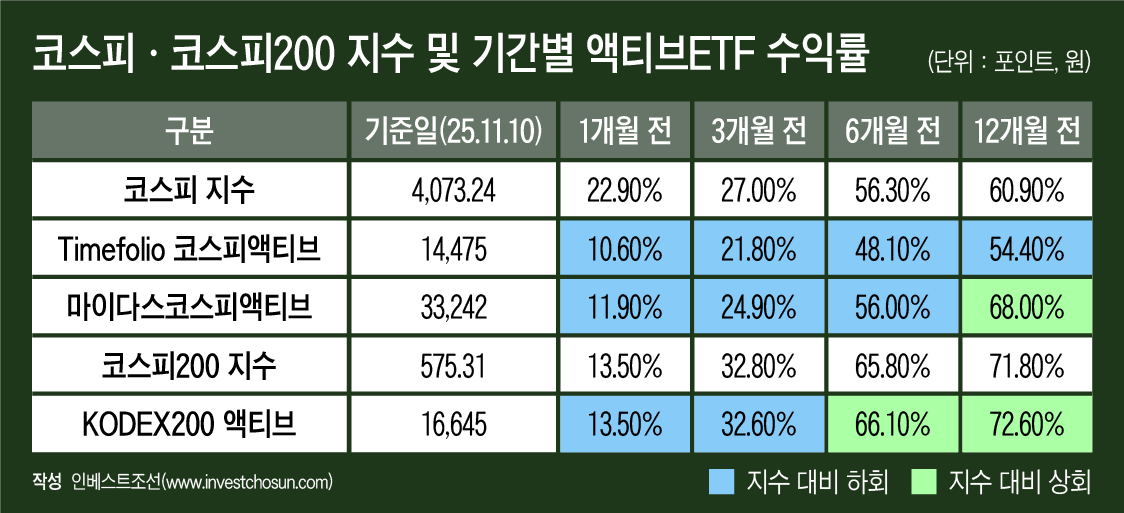 '4000피' 불장 속에서도 액티브는 대부분 지수보다 부진