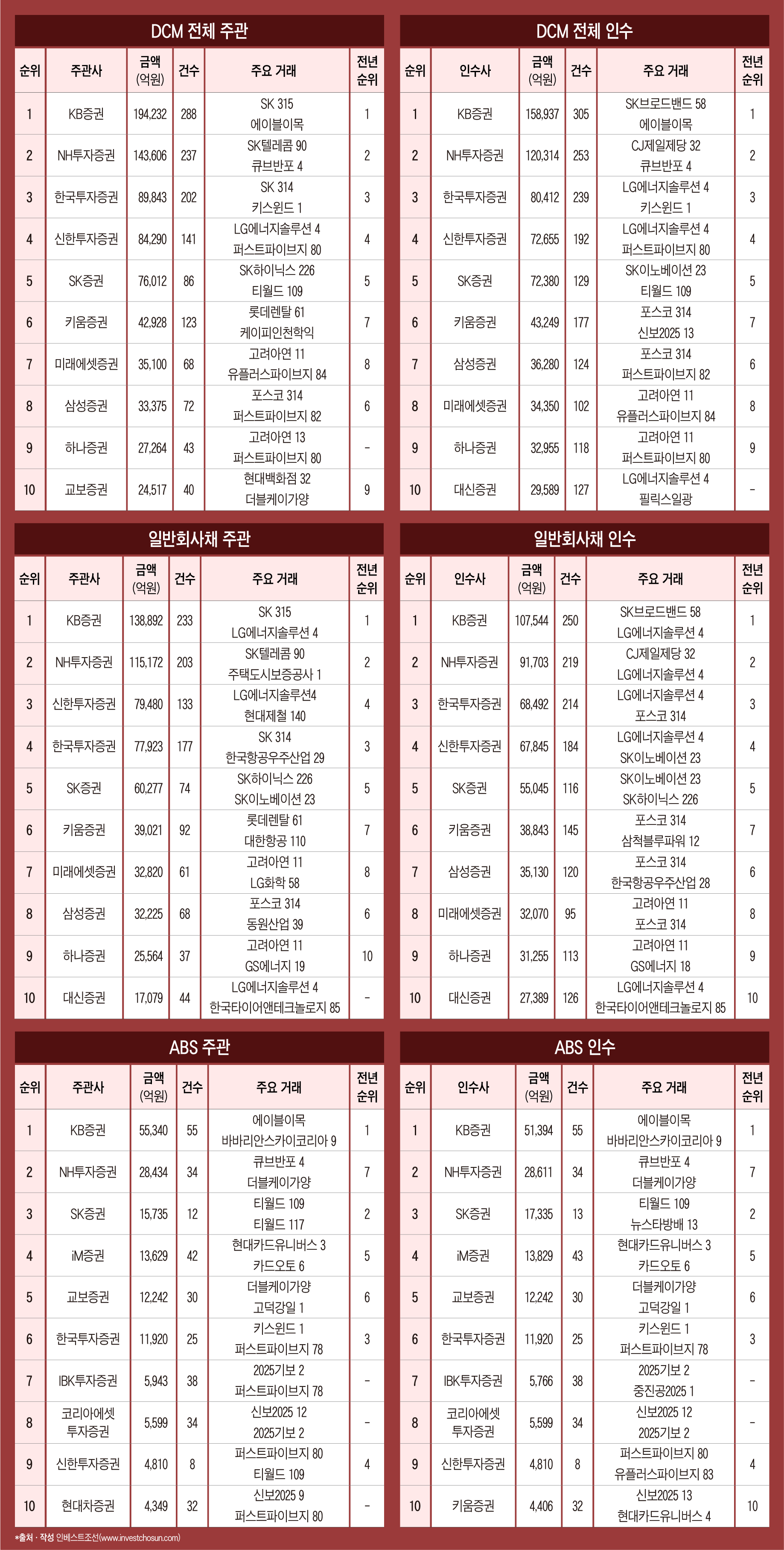 [2025년 연간 집계][DCM 전체 주관·인수 순위]