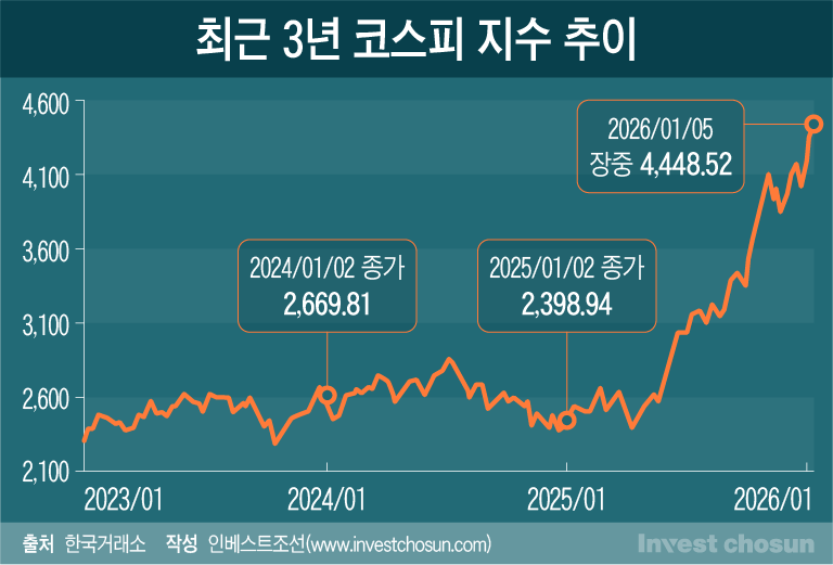 유가증권시장(코스피)이 연초 4500선을 넘어서며 증권가에는 '코스피 5000'을 향한 추가 랠리 기대가 빠르게 확산되고 있다. 반도체를 중심으로 한 실적 회복과 정부 정책·유동성 환경 변화가 맞물릴 경우 '오천피'도 더 이상 과도한 낙관은 아니라는 시각에 힘이 실리고 있는 것이다.