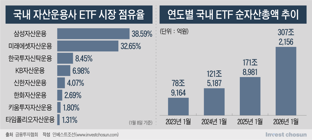 한 자산운용사 ETF 부문 고위 관계자는 "삼성이 지난해 국내 증시 반등 국면을 비교적 안정적으로 활용하면서 선두 구도를 유지하고 있다"며 "시장 규모가 커질수록 개별 테마보다는 연금 자금 흐름이 하우스별 ETF 실적을 좌우하는 비중이 커질 것"이라고 말했다.