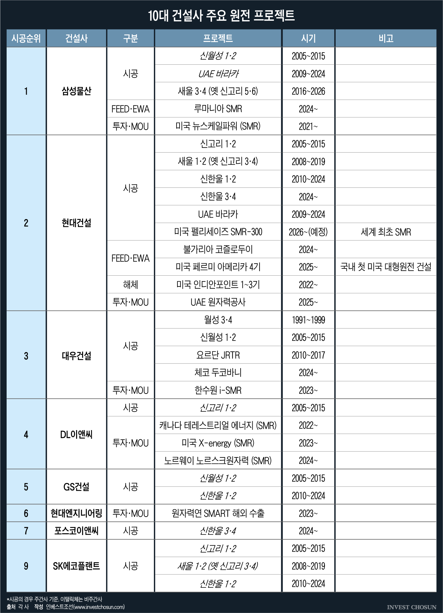 한동안 시장의 관심에서 벗어나 있던 건설업이 '원전' 이슈를 계기로 다시 주목받고 있다. 다수 건설사가 원전을 미래사업으로 내세우고 있지만, 핵심 역할을 수행한 경험이 있는지가 관건이다.