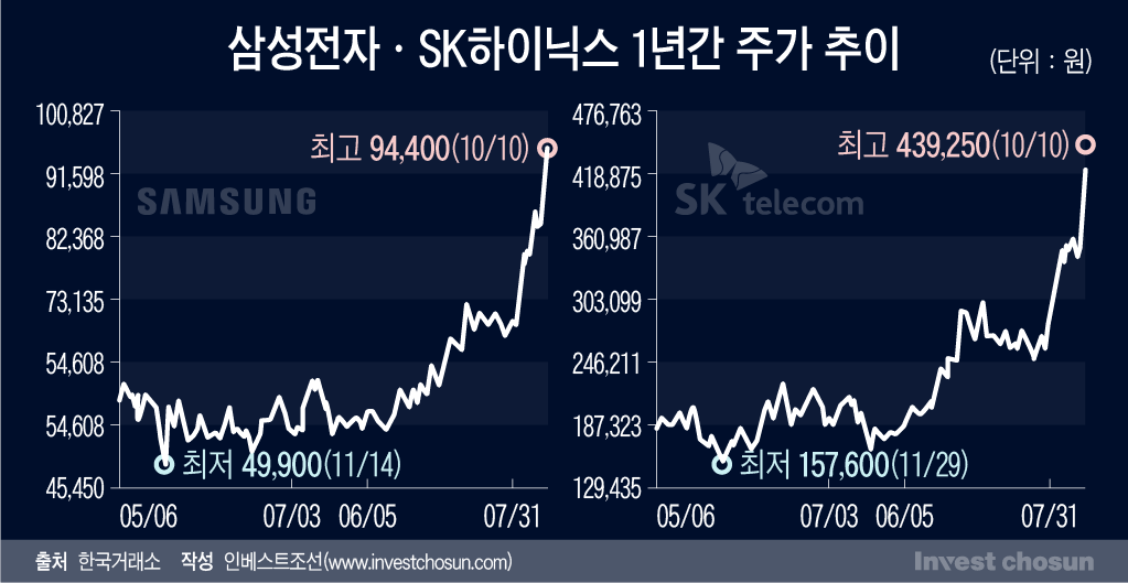 연휴 직전 삼성전자와 SK하이닉스 주가는 나란히 연고점을 경신했다. 샘 올트먼 오픈AI 최고경영자(CEO)가 방한해 삼성전자, SK하이닉스와 고대역폭메모리(HBM) 공급 협력을 비롯해 향후 인공지능(AI) 인프라 구축에 양사 지원 의지가 필수적이라는 입장을 공개적으로 드러낸 덕으로 풀이됐다. 양사도 오픈AI가 주도하는 프로젝트에 적극적으로 협력하겠다는 입장을 재확인했다.