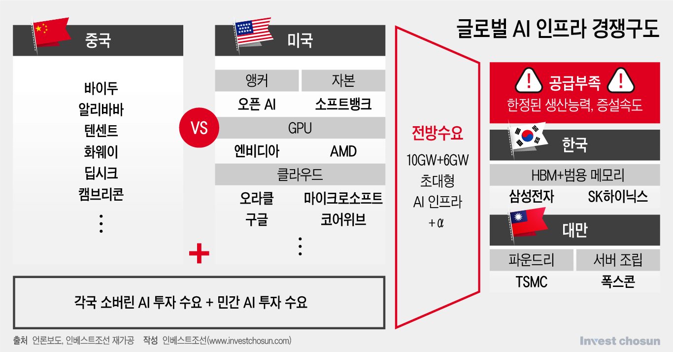 그러나 AI 주도권 싸움에서 양사의 전략적 가치가 크게 치솟는 구간에 들어섰다는 평이 훨씬 더 강하다. 오픈AI를 위시한 전방의 투자 계획들이 과열되며 일부 거품이 발생했다 쳐도 양사의 메모리 반도체 없이는 어차피 전쟁을 치를 수 없는 구도여서다. 고객사 발주가 기본인 TSMC의 파운드리에 비해 양사 주력인 메모리 반도체는 여전히 커머디티(상품) 성격이 짙어 과잉투자 위험을 일부 상쇄할 수 있다는 점도 유리한 지점으로 꼽힌다.
