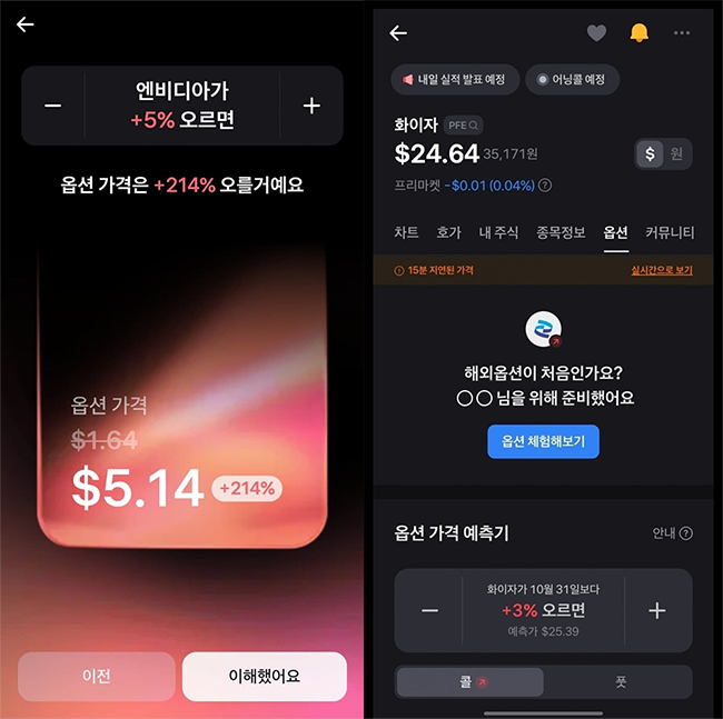 이미지 크게보기- *토스증권의 옵션 서비스 홍보 관련 예시