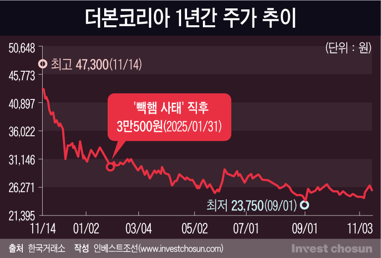주가 하락에는 반복된 오너 리스크와 실적 약화가 복합적으로 작용했다는 평가다. 올해 초 자사 제품 '빽햄' 가격 논란으로 일어난 '빽햄 사태'를 시작으로 농지법 위반 의혹, 원산지 표기 오류, 공장 위생 문제 등이 순차적으로 불거지며 브랜드 신뢰도가 크게 저하됐다. 백 대표 개인 브랜드 의존도가 높았던 만큼, 논란은 곧바로 기업 이미지 훼손으로 이어지는 구조였다.