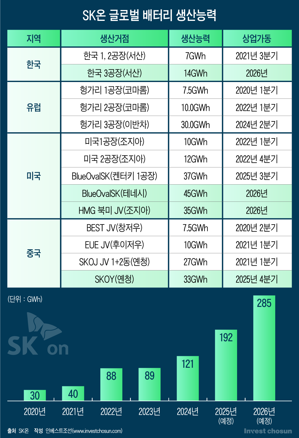 올 연말 기준 SK온의 배터리 최대 생산능력은 약 192GWh 규모다. 가동을 앞둔 국내외 신공장을 포함하면 내년 캐파는 280GWh 이상으로 불어날 수 있다. 늘어날 캐파 대부분이 북미 지역에 몰려 있는데, 확대 폭이 현지 전기차 수요 성장세를 웃돈다. 경쟁사 역시 상황은 다르지 않아 업계 전반이 수년째 가동률 조정, 라인 전환, 신규 사용처 수주 확대에 전력하고 있는 상황이다.