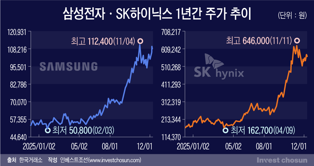 양사 주가 전망에 대해서도 다양한 시각이 교차한다. 최근 전방 AI 투자가 과열되면서 거품에 대한 걱정이 증시 발목을 잡고 있긴 하나 양사 모두 4분기에도 사상 최대 실적을 기록할 것으로 예상된다. 올 연말 결산을 전후해 양사 주가의 동반 랠리가 재개될 거란 관측이 많다.
