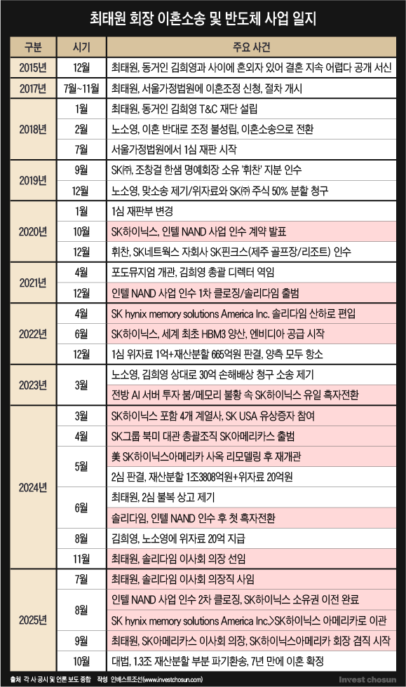 개인사와 연관 짓는 시선도 있다. 마침 지난 10월 대법원 판결로 최 회장과 노소영 아트센터나비 관장의 이혼이 확정됐다. 10여년 동안 계속된 갈등이 마무리 국면에 접어들면서 운신의 폭이 늘어나는 동시에 동거인인 김희영 티앤씨재단 이사장이 최 회장의 법적 배우자가 될 수 있는 길도 열렸다. 향후 그룹 승계나 상속을 둘러싼 조건에도 변화가 발생할 수 있다 보니 재계는 물론 투자업계의 관심이 식기 어려운 사안으로 통한다. 김 이사장은 미국 시민권자이고 자녀들의 국적도 미국으로 알려져 있어, 미국이 새로운 터전이 될 수도 있다는 얘기도 나온다.