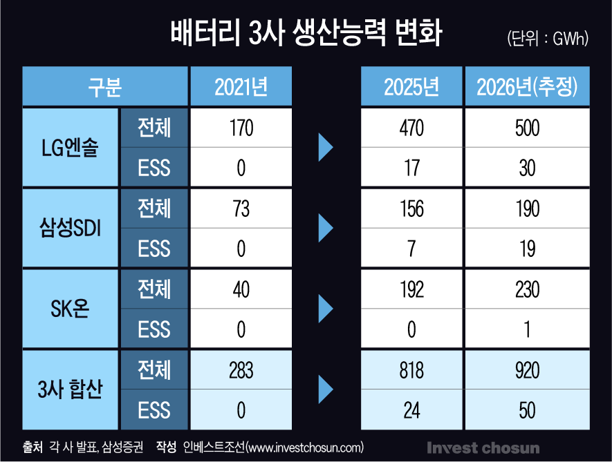 2026년엔 LG엔솔과 SK온, 삼성SDI의 글로벌 확장 전략이 사실상 마무리되며 3사 합산 캐파가 사상 최대치에 이를 예정이다. 3사와 마찬가지로 3원계에 집중해 온 국내 소재사들의 캐파 역시 마찬가지다.