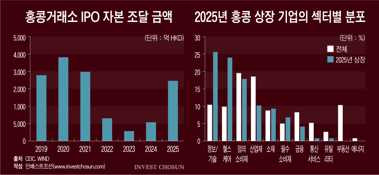 홍콩 증시 IPO 상위 10곳 가운데 6곳은 중국기업이다. 상위권에 포진한 기업들 외에도 ▲인공지능(AI) 기반 신약 개발사 인실리코메디슨(Insilico Medicine) ▲디지털 트윈 분야 대표 기업 51월드(51World) ▲가사 로봇 개발 기업 원로보틱스(OneRobotics) ▲철강 구조물 기업 USAS 등 주요 중국 기업들이 홍콩에서 자금조달에 성공했다.
