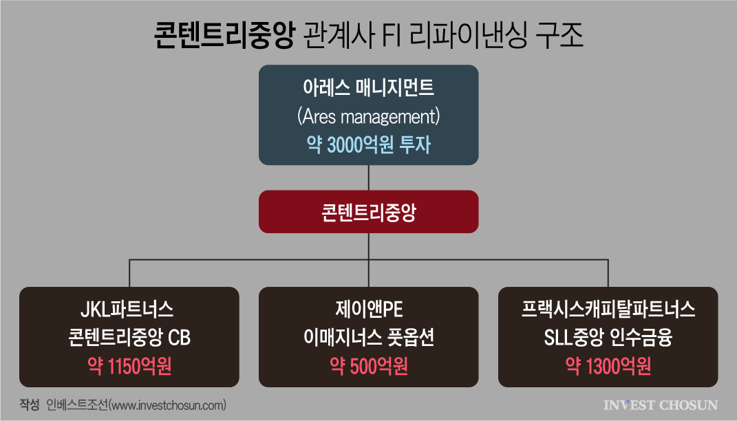 콘텐트리중앙이 글로벌 자산운용사 아레스매니지먼트(Ares Management)와 손잡고 재무 구조 정비에 나선다. 신규 자금 유치를 통해 기존 재무적투자자(FI) 투자금과 인수금융을 정리하는, 이른바 리파이낸싱 성격의 거래로 평가된다. 최근 영화 '왕과 사는 남자' 등 흥행작이 이어지며 콘텐츠 사업 기대감이 일부 회복된 상황에서 자금 조달이 이뤄지고 있다는 점도 관심을 끌고 있다.