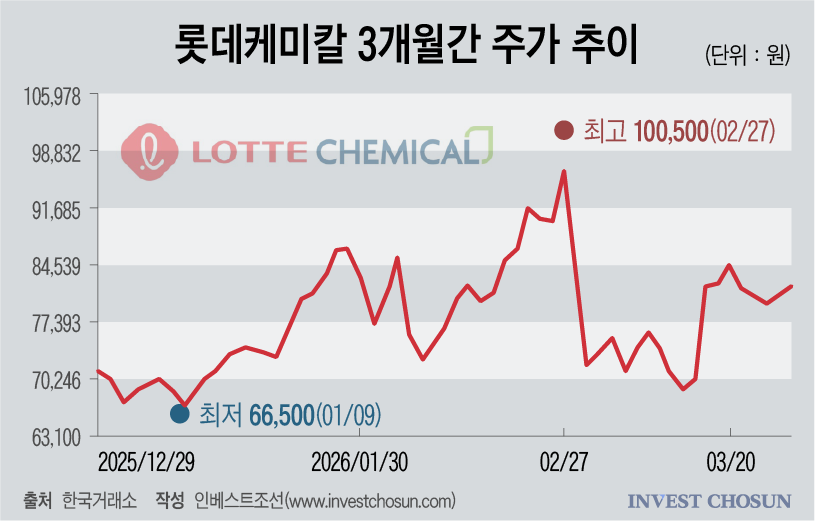 매수 예정가격은 8만1130원으로 현재 시장가격과 괴리가 작다. 분할 반대의사 통지 및 접수기간도 내달 20일부터 29일까지로 기간도 그리 길지 않다. 그러나 지난 3개월 동안에도 ▲대산 1호 프로젝트에 대한 기대감이나 ▲미국 스페이스X와의 첨단소재 협력 사실 ▲중동사태로 인한 글로벌 에너지 공급망 충격 등으로 주가가 출렁여왔다. 한 달여 전 스페이스X 소재 공급 기대감이 반영됐을 당시 롯데케미칼 주가는 10만원 이상까지 상승하기도 했다.