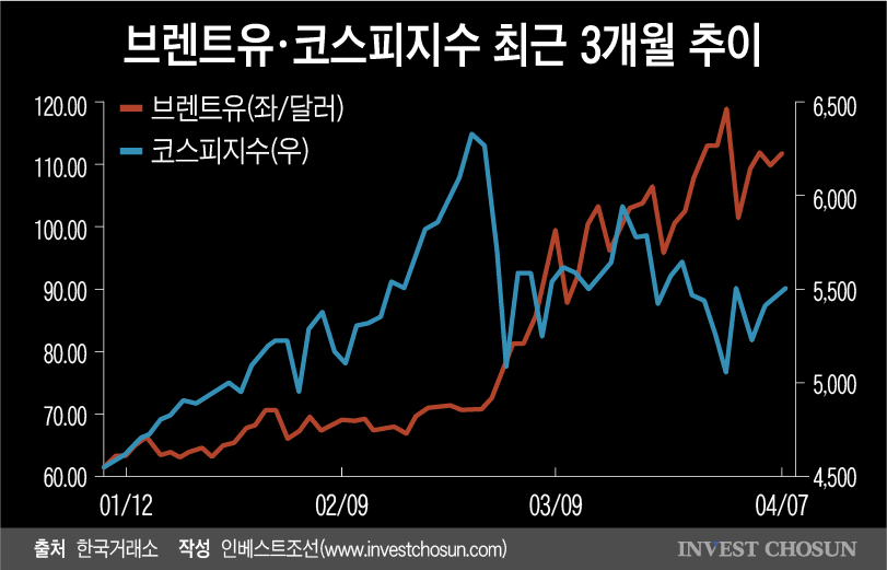 고유가 역시 당분간 지속이 불가피할 전망이다. 전쟁이 진행되는 사이 북해산 브렌트유의 지난 한 달 평균 가격은 배럴당 103달러로 치솟았다. 1월 평균은 64달러, 2월 평균은 69달러였다.