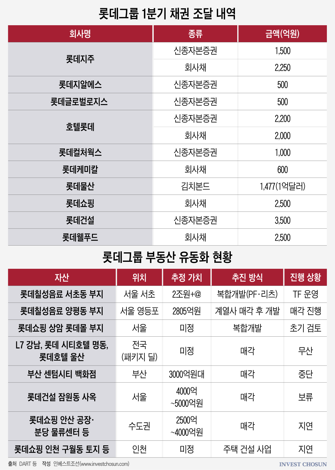 한 투자업계 관계자는 "롯데지주 신용등급이 떨어지고 지난해 전무급이 직접 기관 IR을 다니는 등 그룹 차원의 절박함을 보여주고 있다"며 "새로 찍은 신종자본증권의 금리 수준을 감안하면 비용 부담이 적지 않아 근본적인 재무 개선책은 없는 상황"이라고 지적했다.