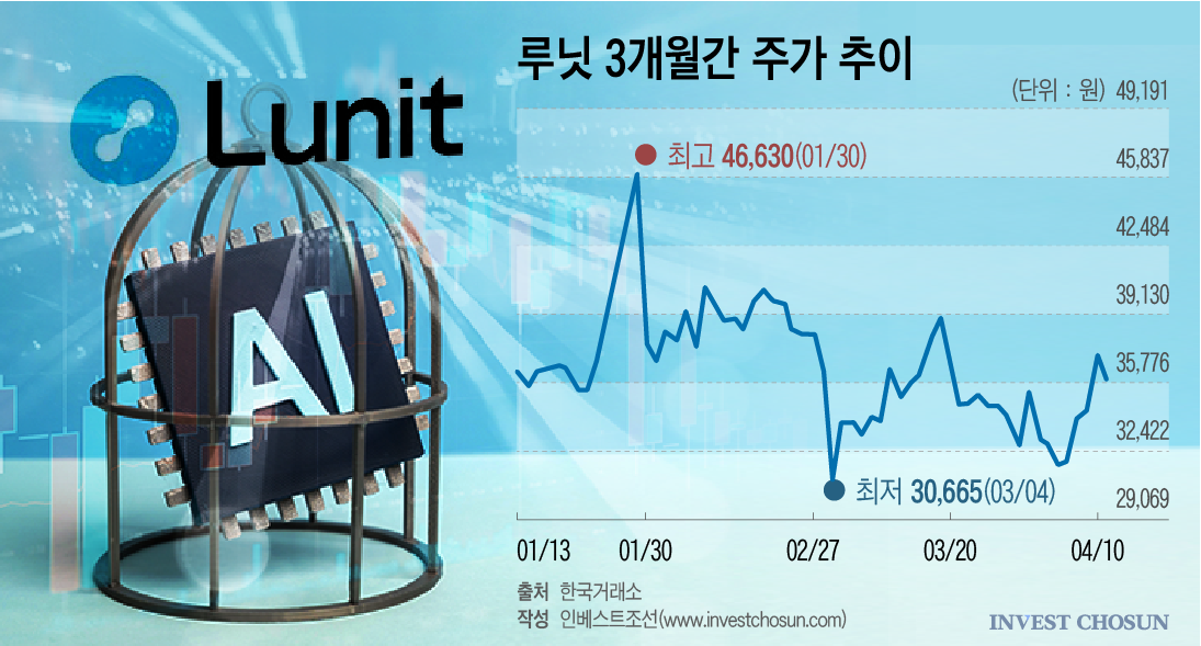 실제 루닛 주가도 유상증자 발표 이후 조정을 받았다. 지난 1월 말 장중 4만6630원까지 올랐던 주가는 유증 발표 직후 16% 이상 급락했고, 이후 3만원 초반까지 밀리며 고점 대비 한때 20% 이상 하락했다. 당초 2500억원 수준이던 조달 계획이 2115억원대로 낮아진 점 역시 위축된 투자심리를 반영한다는 평가다.