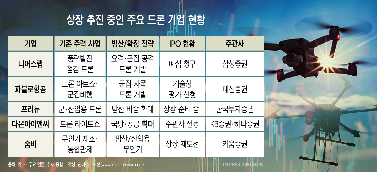 드론이 현대전 핵심 전력으로 부상하면서 국내 드론 스타트업들이 잇따라 기업공개(IPO)에 나서고 있다.