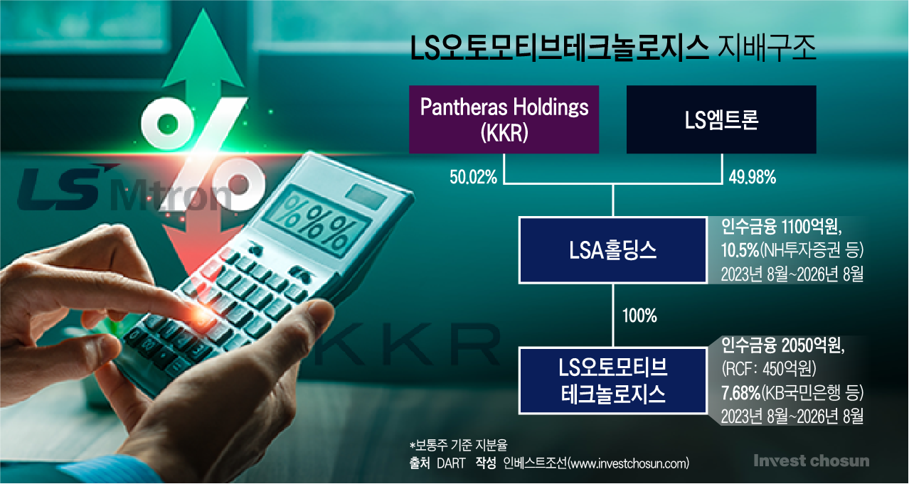 LS오토모티브의 지배구조는 LS엠트론과 콜버그크래비스로버츠(KKR)가 공동 투자한 판테라홀딩스(Panthera Holdings) 아래 LSA홀딩스가 위치하고, 이 LSA홀딩스가 LS오토모티브를 지배하는 형태다. LS그룹은 2017년 7월 LS오토모티브 지분을 KKR에 매각하며 공동 경영 체제로 전환했다.